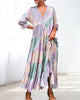 De V - nek vorm past de neklijn effectief aan, waardoor de nek visueel langer lijkt en geeft u een elegante uitstraling. De unieke en nieuwe kleurprenten brengen stijl en dynamiek aan de jurk en helpen u gemakkelijk de aandacht te trekken.
