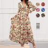 Vrouwen Bloemen V-hals Jurk met Lange Mouwen