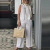 Dames Eenvoudig Ademend Pak - Mouwloze Top met Ronde Hals & Wijde Broek
