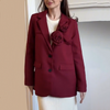 Deze jas is versierd met twee driedimensionale roze versieringen op de kraag, wat een elegante touch toevoegt aan je zakelijke kleding. Perfect voor dagelijks gebruik, het vindt een balans tussen professioneel en chique.