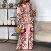 ADEMBENEMEND ETNISCH PATROON – Geef je garderobe een upgrade met deze opvallende 2-delige set met verfijnde etnische motieven. De lange-mouwen top heeft een klassieke kraag en meerknops-sluiting, terwijl de wijde pijpbroek praktische zakken combineert met stijl.